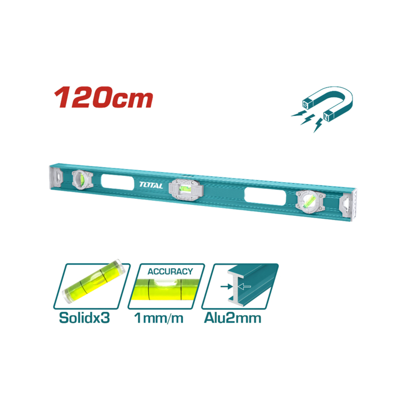 TOTAL TMT212026 Spirit Level 120cm – Magnetic Aluminum Level with Unique Design, High-Precision Vials, and Durable Construction for Professional Use