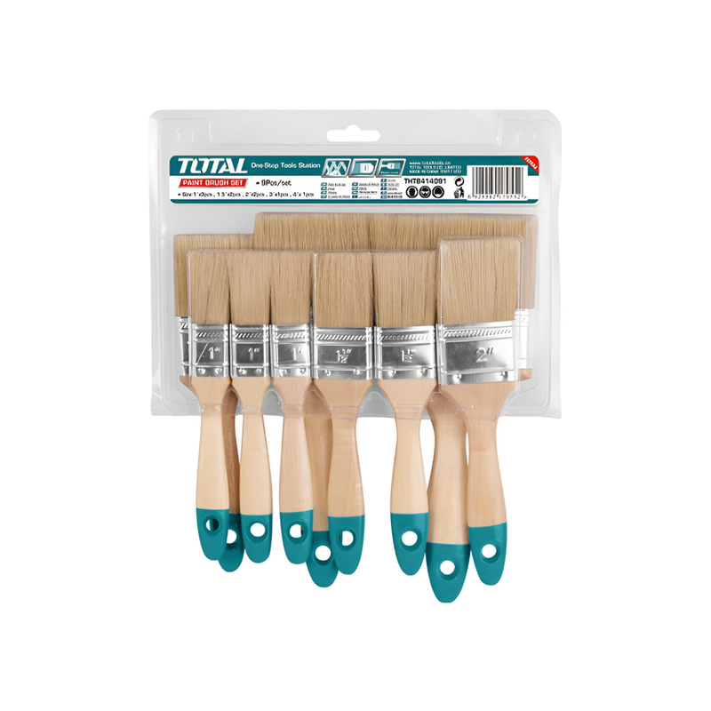 The TOTAL 9pcs Paint Brush Set THT8414091 is the perfect solution for both professional painters and DIY enthusiasts looking for high-quality, versatile brushes. This set includes a range of brush sizes, ideal for a variety of painting projects. Whether you're tackling large surfaces or detailed work, the set provides the tools you need for a smooth, even finish. The brushes feature wooden handles for comfortable grip and long-lasting durability. Packaged in a double blister, this set ensures that each brush stays protected and organized.