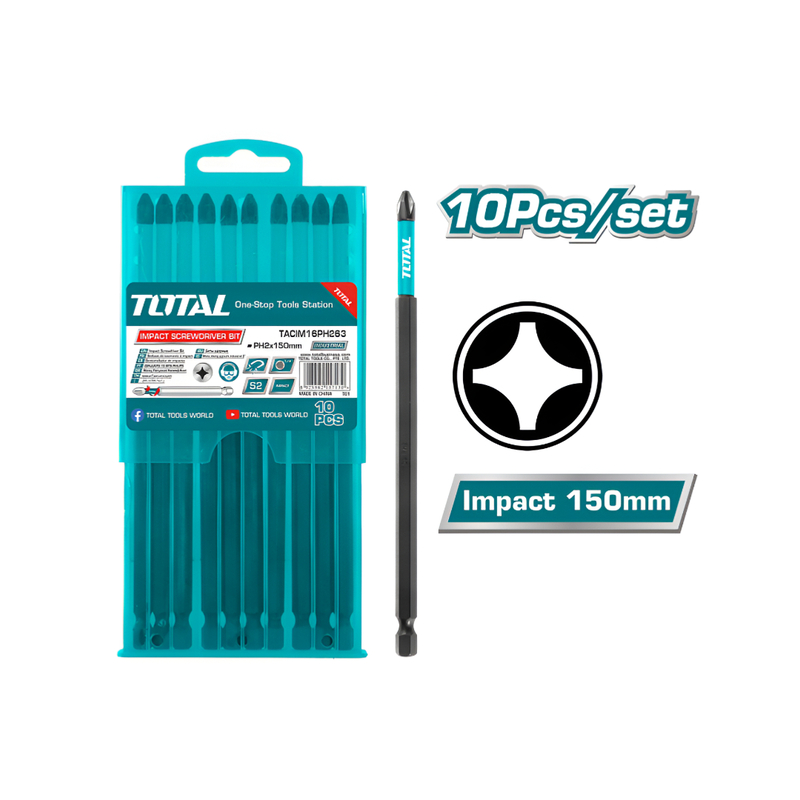 Total Impact Screwdriver Bit 10 Pcs PH2X150mm – Durable, High-Performance Bits for Efficient Screwing and Drilling Tasks