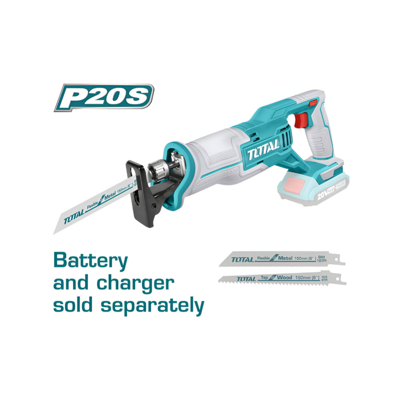 Total TRSLI1152 20V Li-ion Cordless Reciprocating Saw โ High-Speed 0-3000 SPM, 115mm Blade, Lightweight & Ergonomic Design (Battery & Charger Not Included)