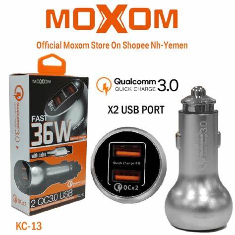 MOXOM KC - 13 Qualcomm 3.0 - 36W Quick Car Charger - Dual USB Port - USB Cable