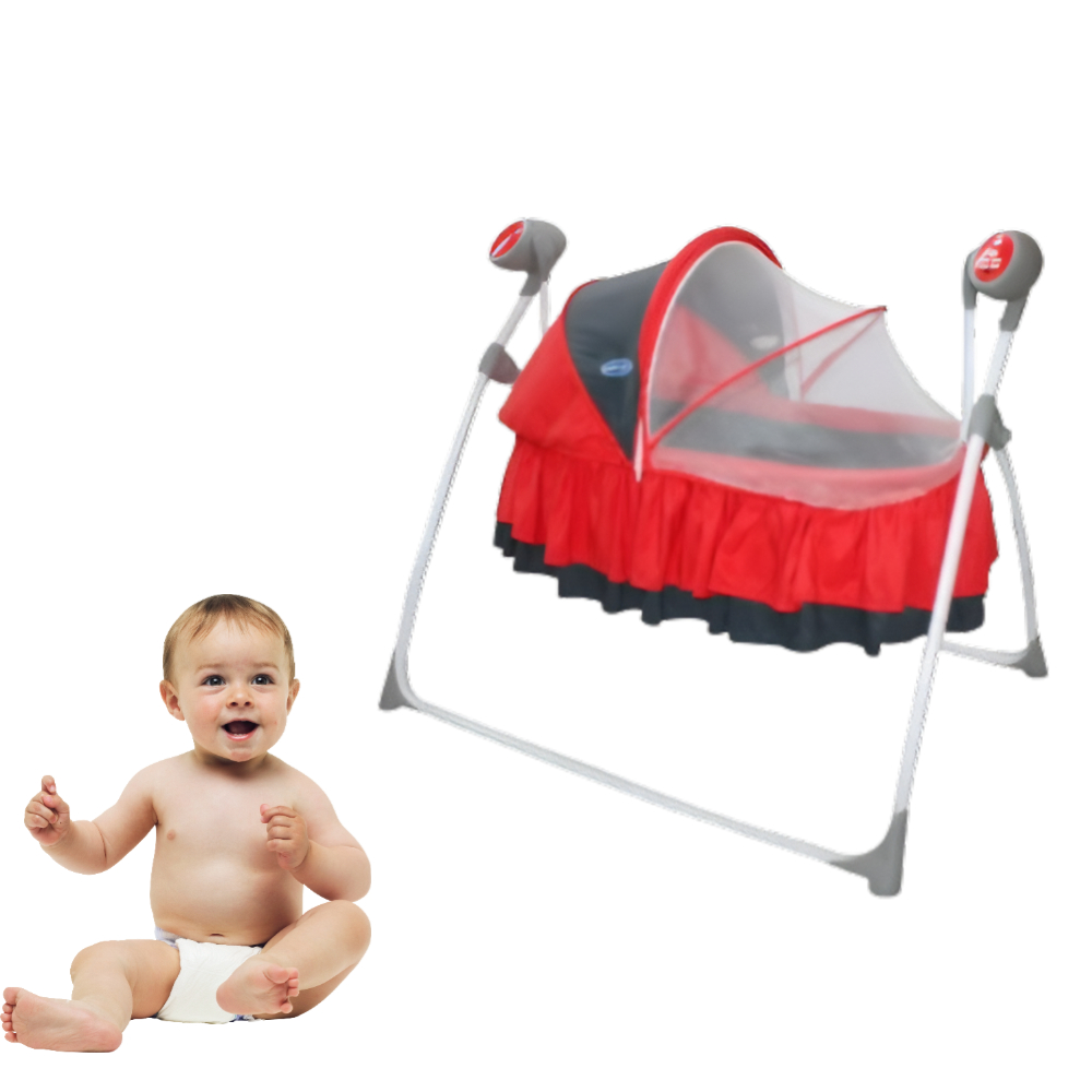 The Baby Love Electric Baby Swing in Red is designed to provide comfort and entertainment for your baby while giving parents a hands-free moment.