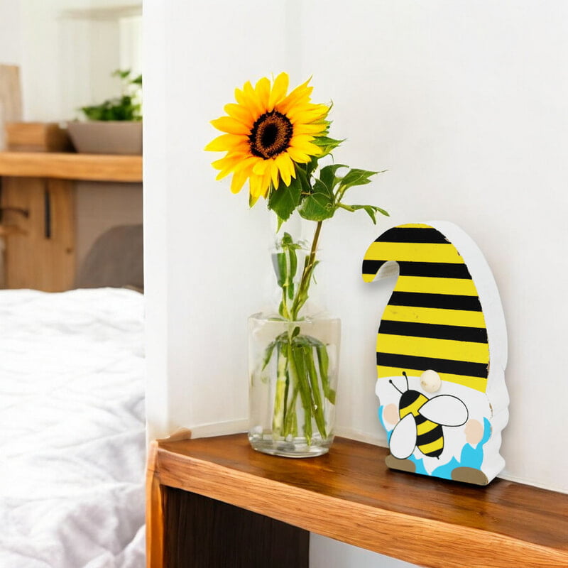 - Design: The gnome wears a yellow and black striped hat, with a cute bee featured on the front, bringing the buzzing excitement of the outdoors inside.