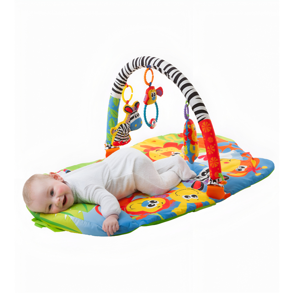 Playgro โ 5-in-1 Safari Super Gym | Multi-Functional Baby Play Gym with Tummy Time Mat, Activity Arch, Hanging Toys, Mirror & Sensory Features for Development and Fun