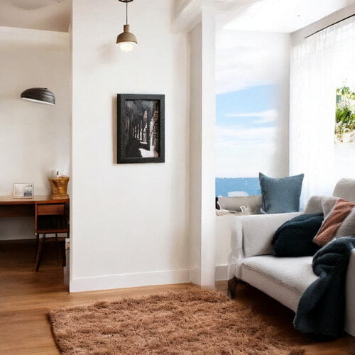 - Elegant Design: With its minimalist look and black-effect , the frame complements any home decor, adding warmth and sophistication to your walls.