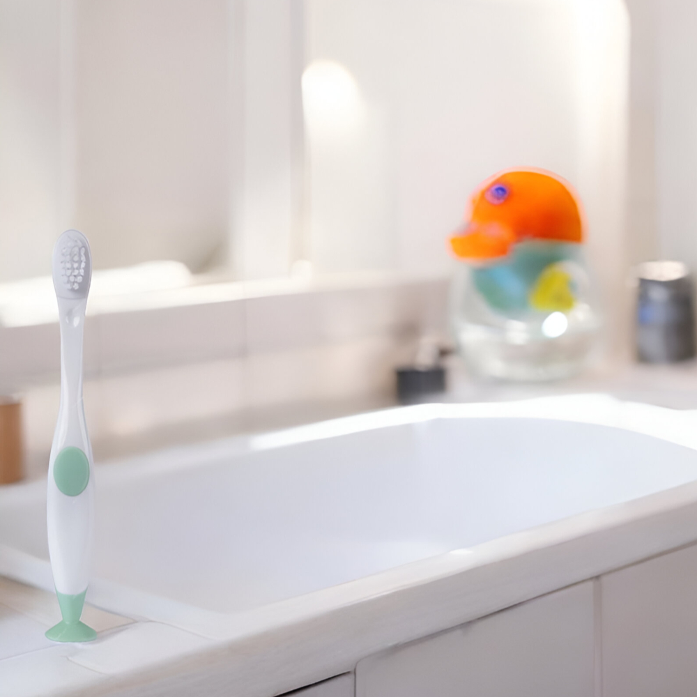 Encourages Independence: Helps babies learn to hold and move the toothbrush, fostering early motor skill development.