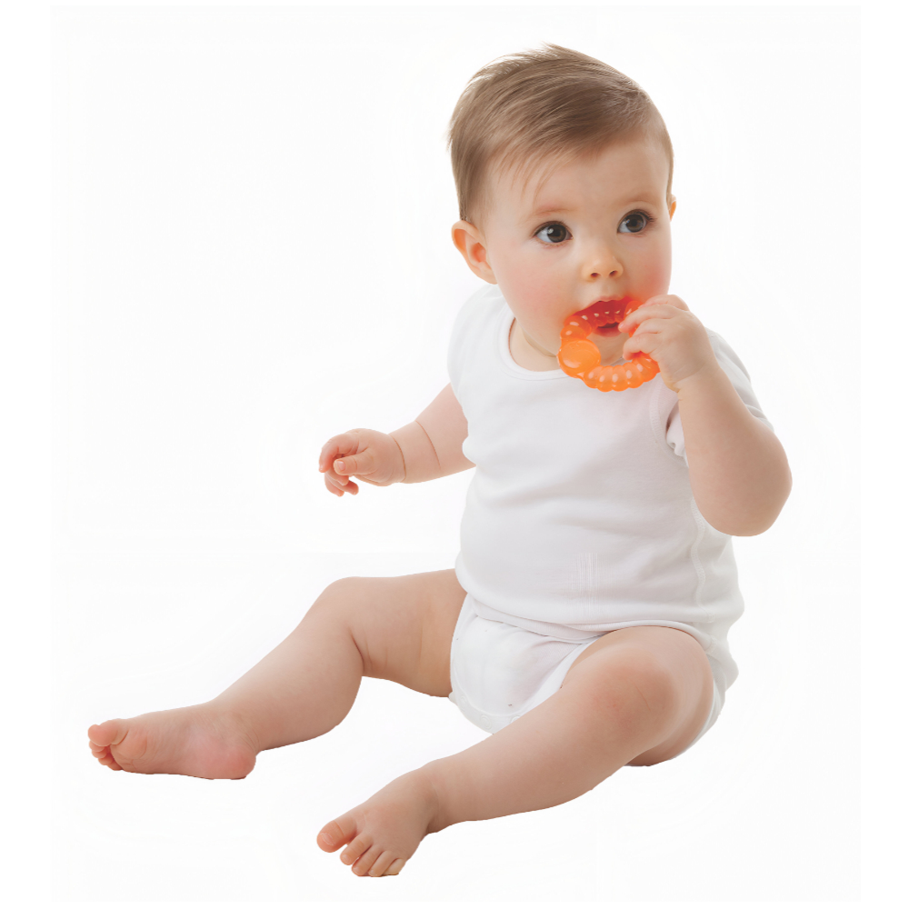 Cooling Comfort: Water-filled design allows teethers to be chilled in the refrigerator for extra soothing relief on sore gums.