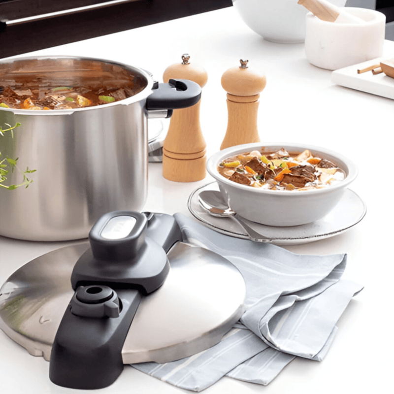 Tefal SECURE COMPACT is the perfect everyday pressure cooker, ensuring fast results and healthy cooking with uncompromising flavor. Discover all the benefits of a high-performance pressure cooker in a 8L format, with easy-to-use controls and a 5-point security system for express cooking with total peace-of-mind.