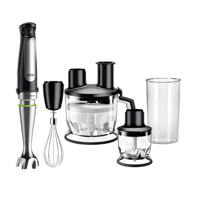 Upgrade your kitchen with the Braun 5-in-1 Hand Blender, a compact yet powerful appliance designed to handle multiple food preparation tasks effortlessly. Equipped with a 1000W high-performance motor, this versatile hand blender delivers exceptional blending, chopping, whisking, and mixing power in seconds. Featuring interchangeable attachments including a blending shaft, whisk, chopper bowl, and beaker, it’s perfect for preparing everything from smoothies and soups to sauces, dips, and desserts.