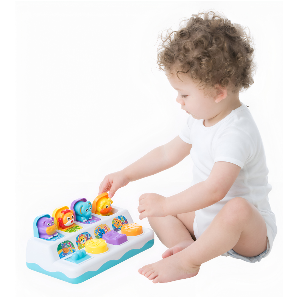 Featuring cheerful jungle characters that pop up when buttons are pressed, along with colorful lights and playful melodies, the Pop Up Jungle Pals keeps babies curious and engaged. Safe, lightweight, and easy to operate, it is ideal for infants aged 6 months and above, offering both educational and playful experiences that support early development.