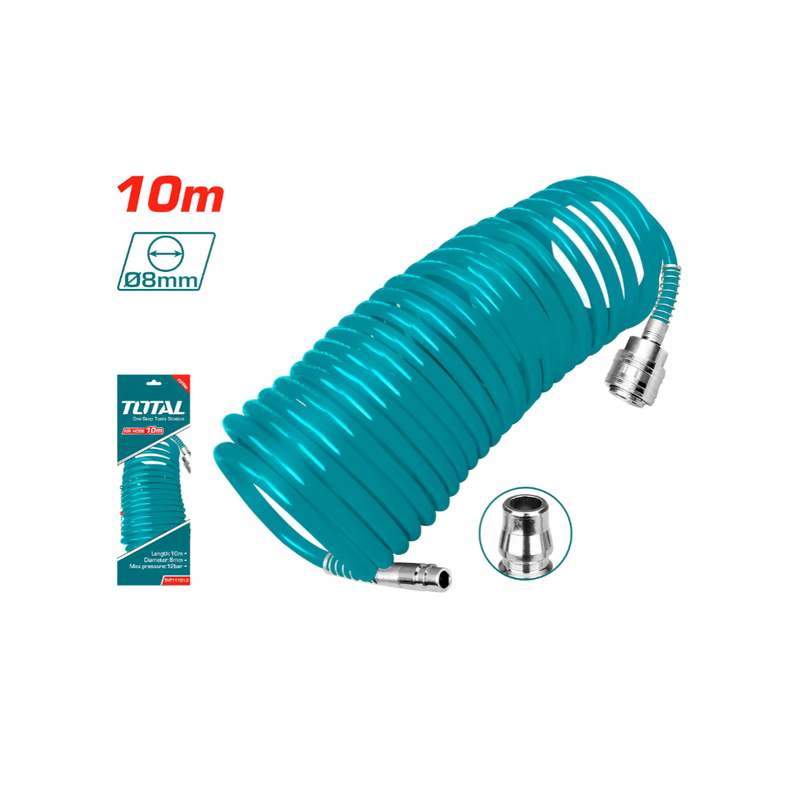 Extended Length (10 Meters): With a 10-meter length, the Total Air Hose provides ample reach for various tasks, allowing you to work across larger areas without the need for constant repositioning of your air compressor. This extended length ensures that you can tackle larger projects with greater flexibility.
