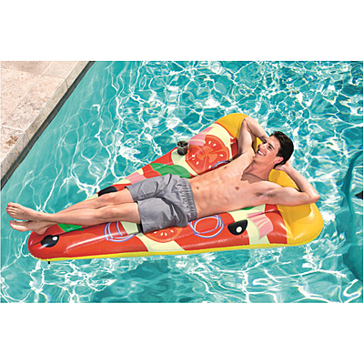 Bestway 43250 Burger Pool Lounge โ 1.58m Inflatable Floating Mattress with Retro Hamburger Design โ Durable Vinyl Construction, Wraparound Grab Rope, and 90kg Weight Capacity